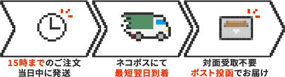 ネコポス発送のため最短翌日お届けが可能*。追跡番号発行、ポスト投函で安心便利に受取。