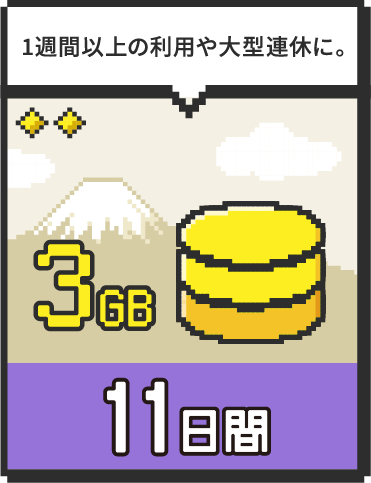 ご旅行やイベントなど限られた短期間のお出かけの際に。スマホの2台持ちやタブレット利用に活躍する短期間/低容量のプランです。